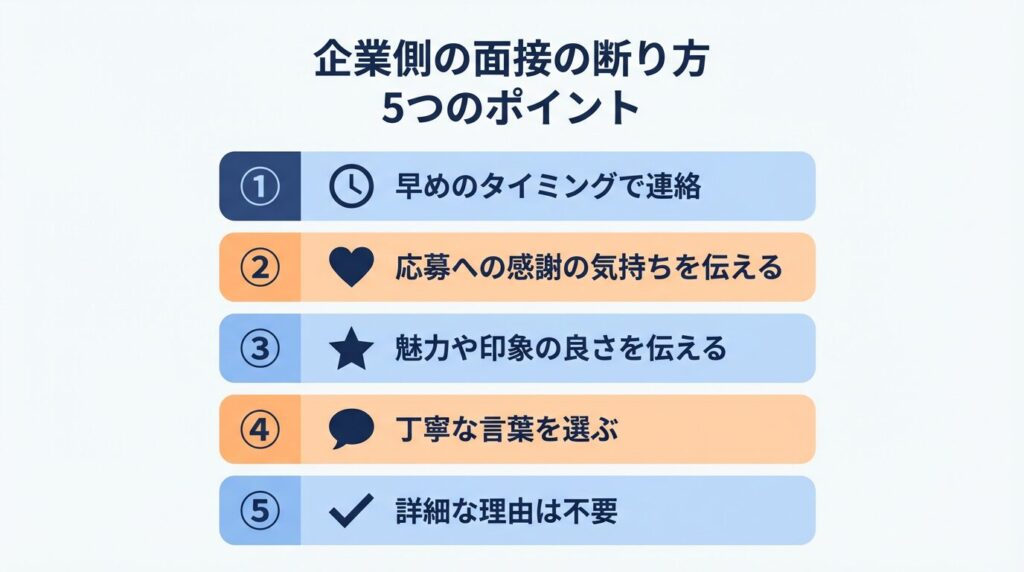 - 企業側の面接の断り方で注意したい5つのポイント がわかる