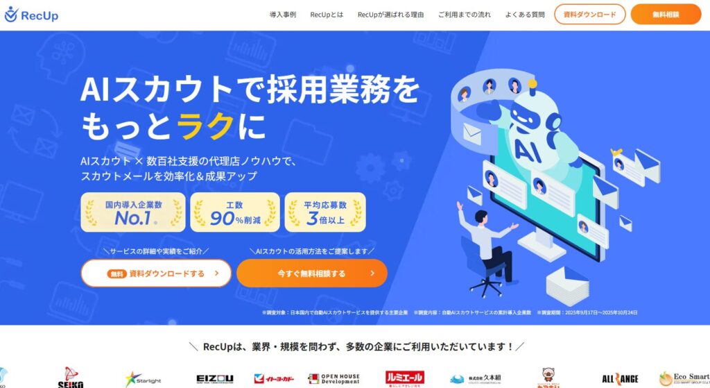 \スカウト業務の効率化ならAIスカウト「RecUp」にご相談ください/