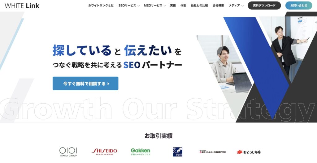 オルグロー株式会社が提供するフルオーダー型のSEO対策サービス「WHITE Link」は、コーポレートサイト・ECサイト・データベース型サイト・オウンドメディアのSEO対策を支援し、これまでに累計3,000社以上の実績があります。