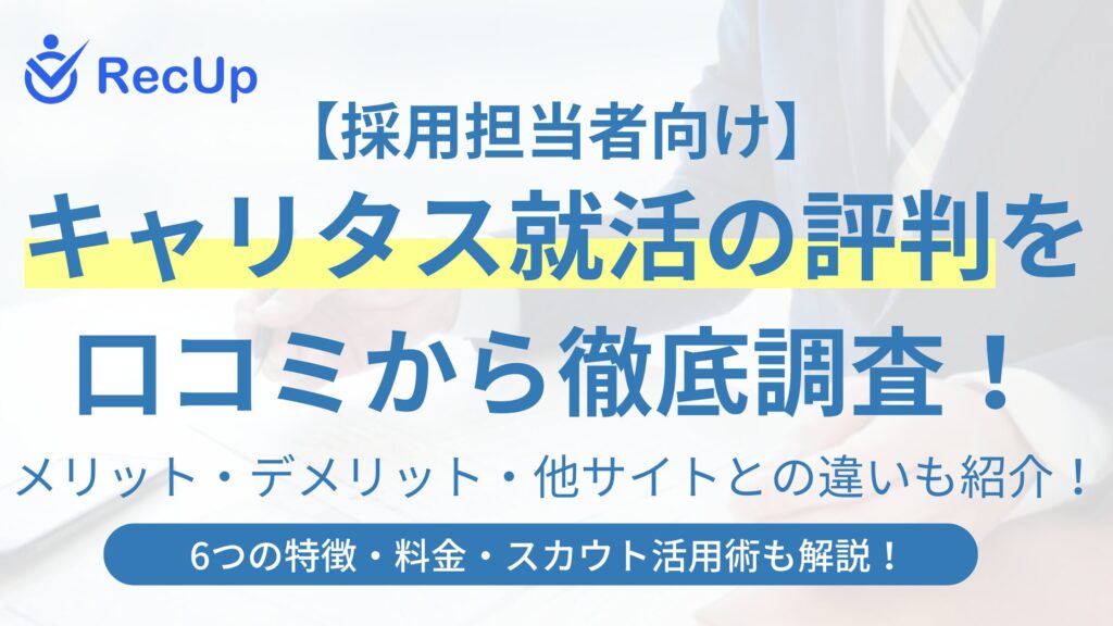 【採用担当向け】キャリタス就活のリアルな評判を口コミから徹底調査!6つの特徴・料金・スカウト活用術も解説!